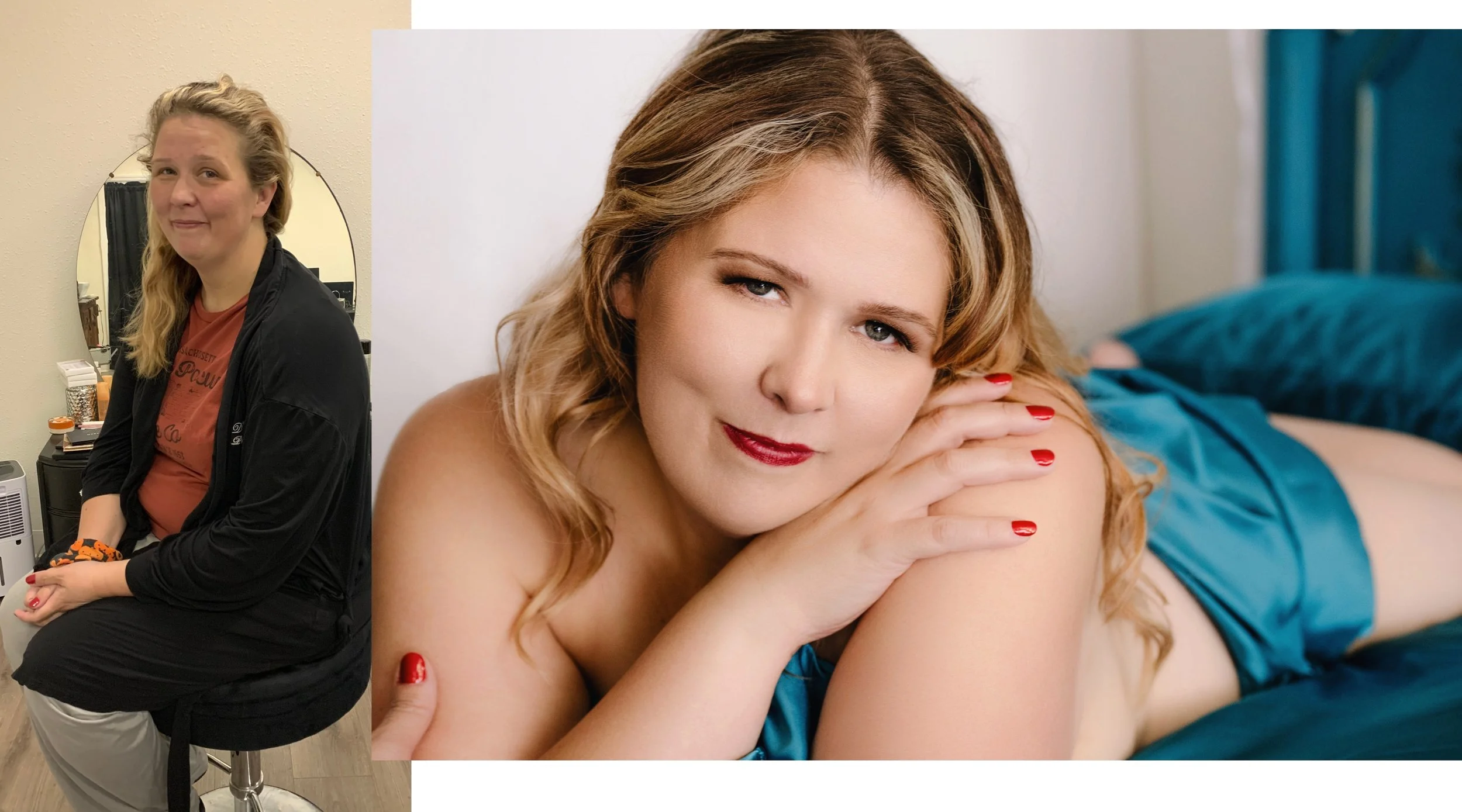 “I feel more confident in my own skin right now and I’ve not had this kind of confidence since before I had kids. The entire experience is worth it with but the team makes it even better. Nikki is phenomenal at makeup and hair, Stacy is great with communicating and answering anything big or small and then Sam just makes all the poses seem easy and fun and helps so much with clothing. They really make this easy!”